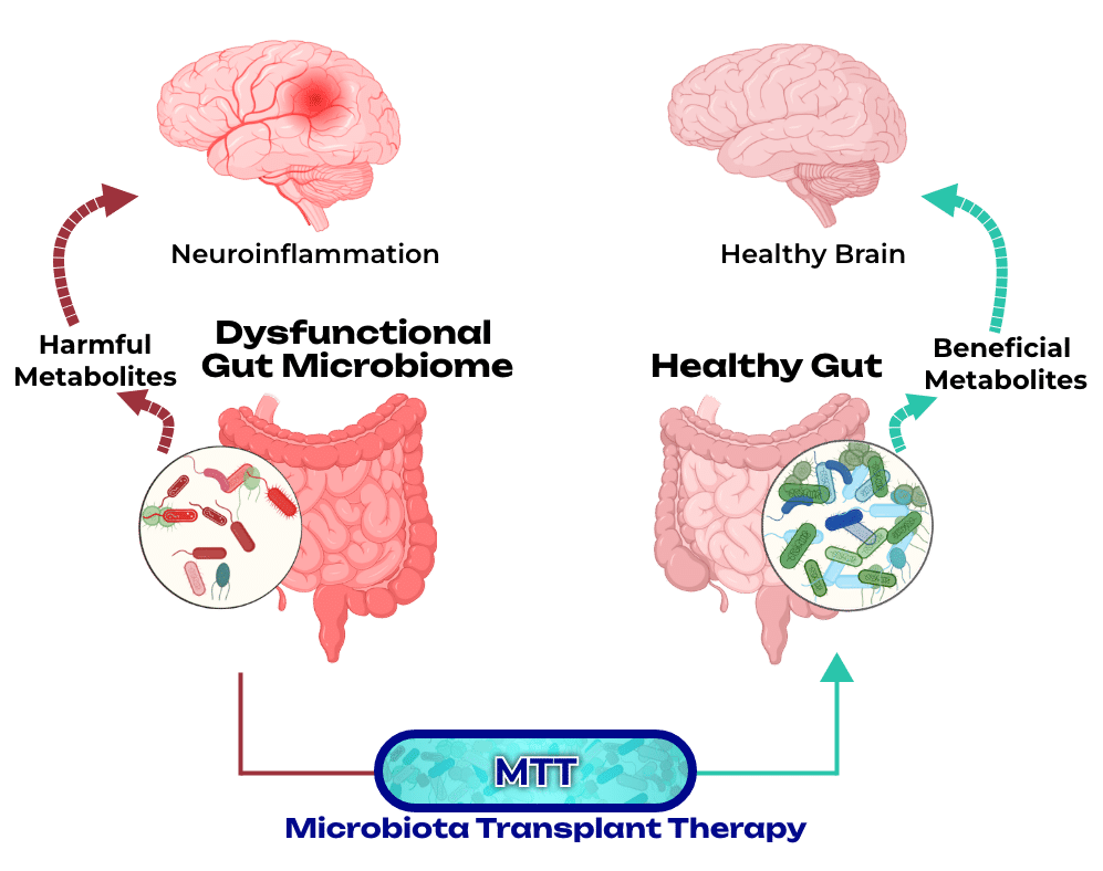 Gut-Brain-Therapeutics, Inc. (GBAT) developed Microbiota Transplant Therapy (MTT), a patented therapy that restructures the gut microbiome by removing harmful bacteria and introducing beneficial microbial communities, purified from select healthy donors. MTT restructures the gut microbiome and improves many symptoms of Autism and Pitt-Hopkins Syndrome, with many other potential benefits. Axxiem looks forward to working with GBAT on future projects.