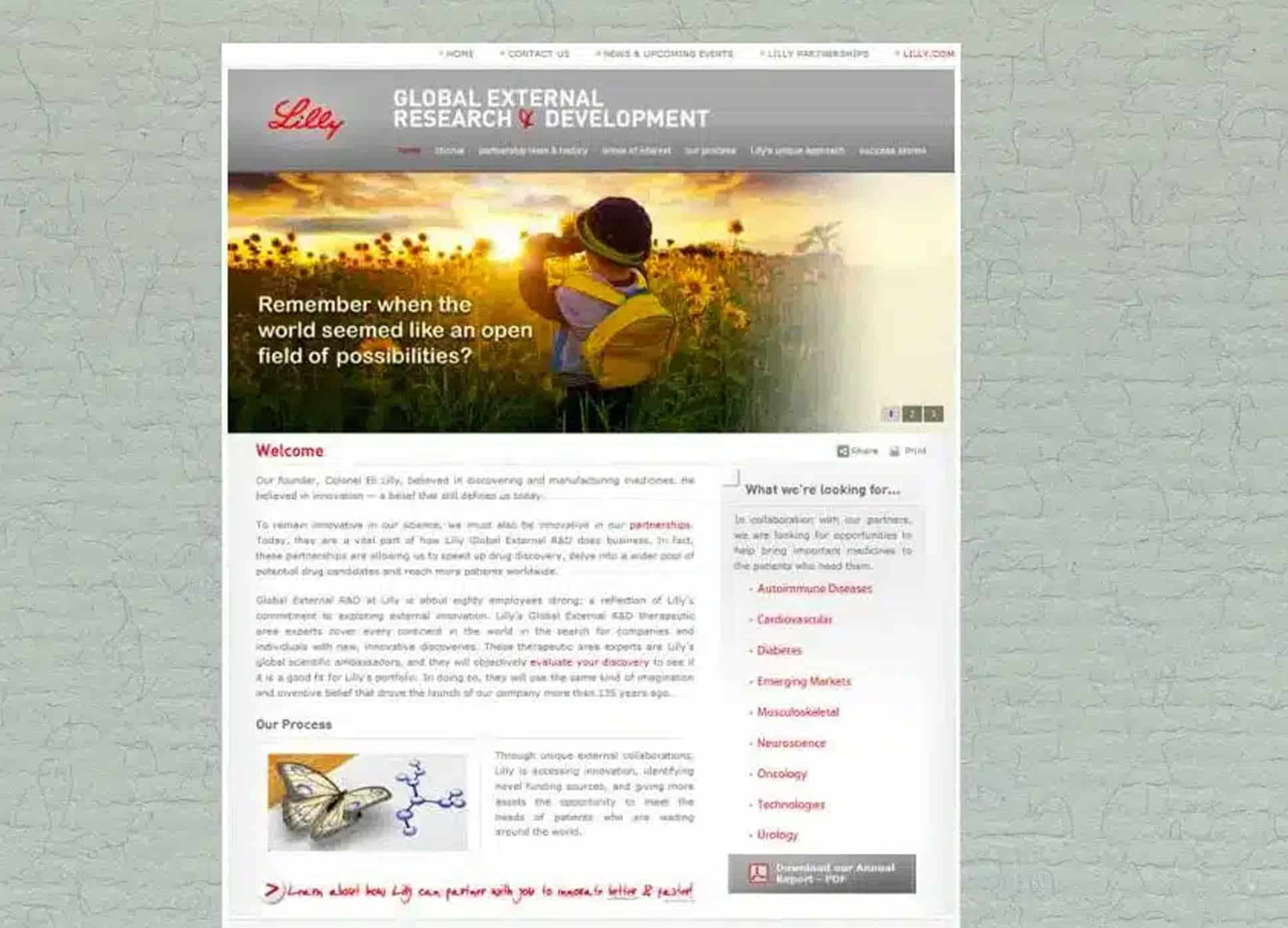 Through unique external collaborations, Lilly is accessing innovation, identifying novel funding sources, and giving more assets the opportunity to meet the needs of patients who are waiting around the world. Lilly approached Axxiem about developing a stand-alone website for the Global External Research & Development division of the company.